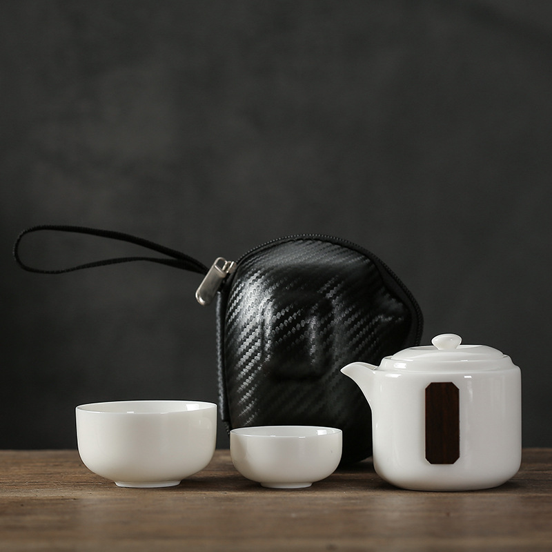 This unique and stylish travel tea set is the perfect companion for tea lovers on the go. The tea set is made of high-quality Dehua white porcelain, with a simple and elegant design. The sturdy protective case keeps everything safe and secure, and the cups can be nested for easy storage. This set is both practical and beautiful, and is perfect for use in the office or on the go. The unique design of the set is influenced by the distinct oriental aesthetic, adding a touch of sophistication to your tea experience. It is also a wonderful gift for any tea lover.