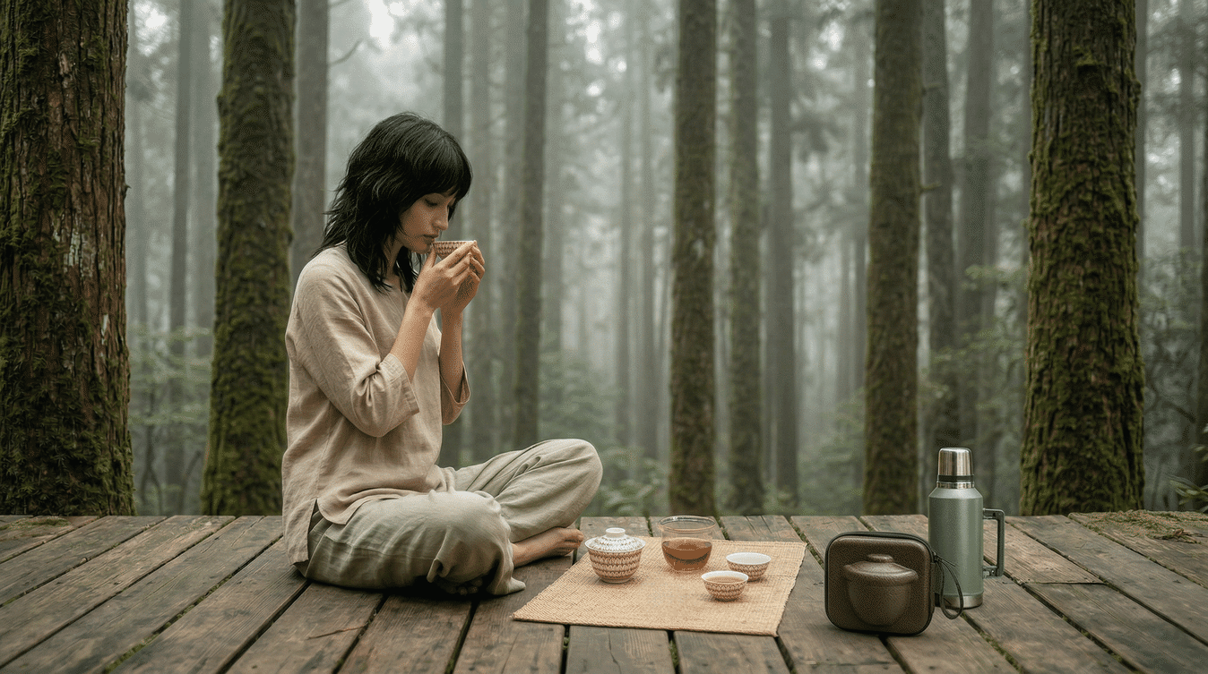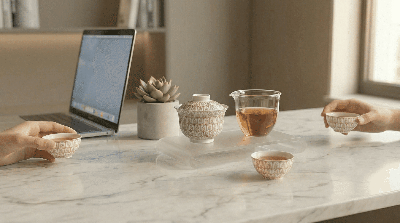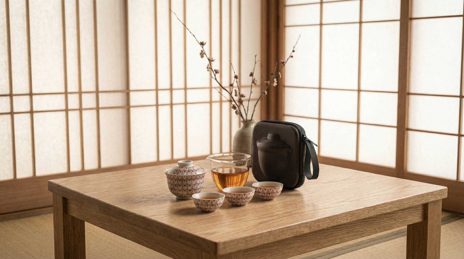 Classic covered gaiwan for controlled steeping, three harmonious cups, and a crystal-clear high-borosilicate glass fair cup for precise serving. No unnecessary mechanisms—just intentional, tranquil preparation. - Travel-Ready Serenity